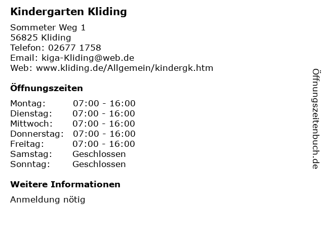 | Öffnungszeiten Kindergarten Kliding in Kliding anzeigen | |