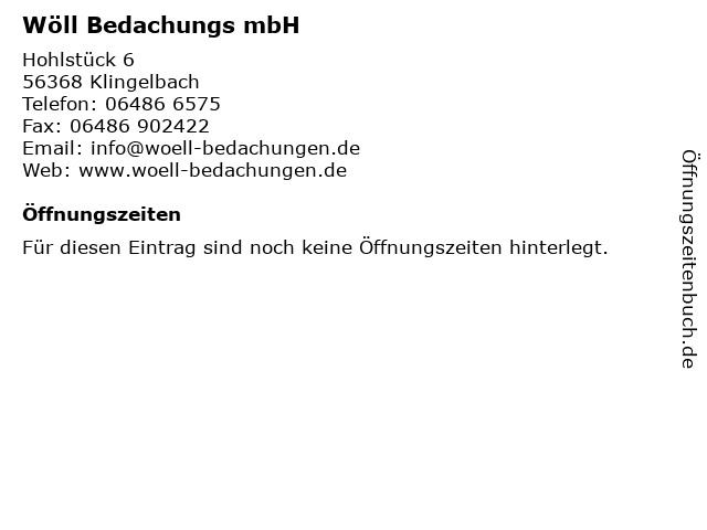 | Öffnungszeiten Wöll Bedachungs mbH in Klingelbach anzeigen | |