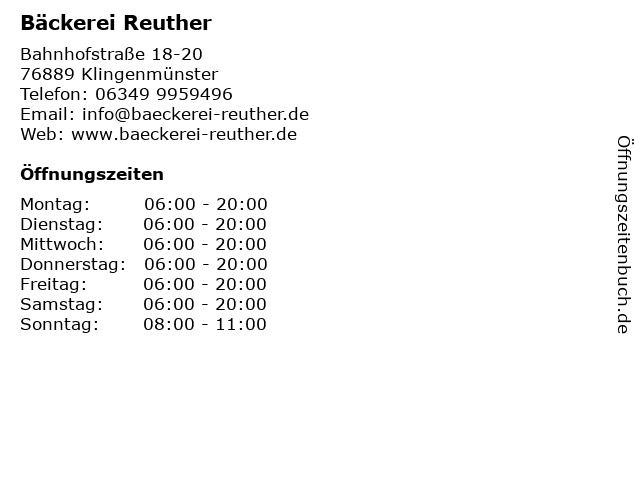 | Öffnungszeiten Bäckerei Reuther in Klingenmünster anzeigen | |