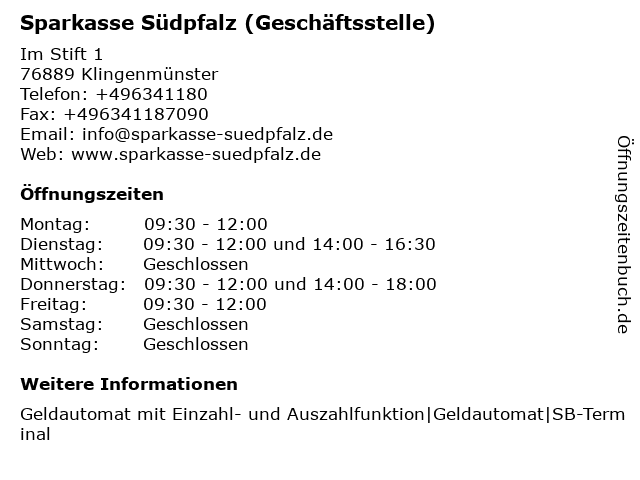 Branchen & Suchbegriffe zu Sparkasse Südpfalz (Beratungspunkt):beratungspunkt, sparkasse, südpfalz |