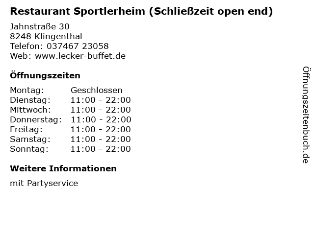Branchen & Suchbegriffe zu Restaurant Sportlerheim (Schließzeit open end):end, essen, feiern, gasthaus, gaststätte, lokal, open, restaurant, schließzeit, sportlerheim |
