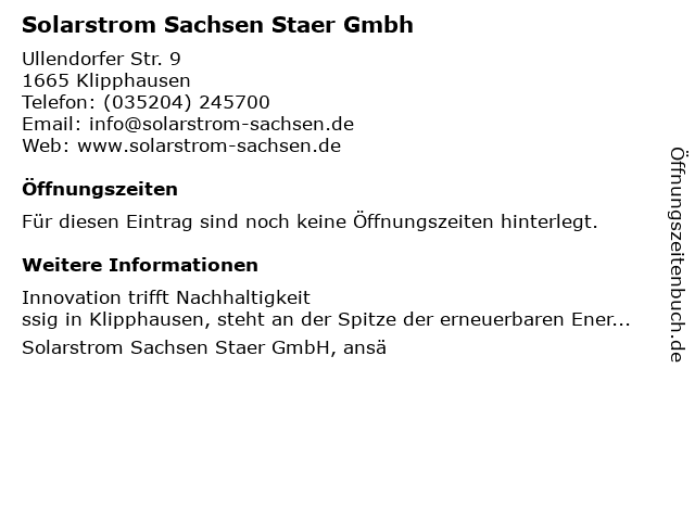 | Solarstrom Sachsen Staer Gmbh anrufen | |