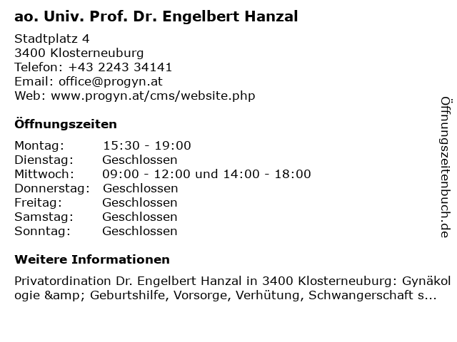 1 Dr.med.univ. Monika Fohr - Fachärztin für Haut- und Geschlechtskrankheiten (Entfernung: 0,00 km) Stadtplatz 4/12, 3400 Klosterneuburg 2 Neuner Peter Univ Doz Dr FA f Haut- und Geschlechtskrankheiten (Entfernung: 0,14 km) Kierlinger Strasse 19/6, 3400 Klosterneuburg 6 |