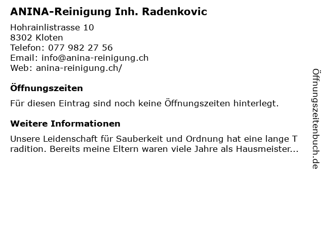 Öffnungszeiten ANINA-Reinigung Inh. Radenkovic