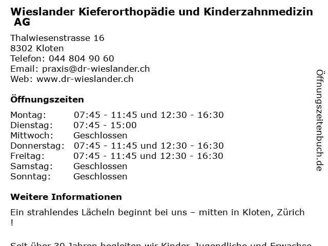 Branchen & Suchbegriffe zu Wieslander Kieferorthopädie und Kinderzahnmedizin AG:kieferorthopädie, kinderzahnmedizin, wieslander |
