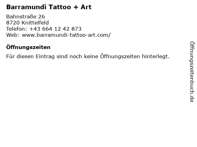 | Öffnungszeiten Barramundi Tattoo + Art in Knittelfeld anzeigen | |