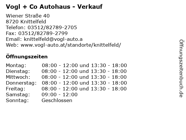 2 Vogl + Co Autohaus - Werkstatt und Ersatzteillager (Entfernung: 0,00 km) Wiener Straße 40, 8720 Knittelfeld 5 Vogl + Co Autohaus - Werkstatt und Ersatzteillager (Entfernung: 12,04 km) Bundesstraße 6, 8753 Fohnsdorf/Judenburg 6 |