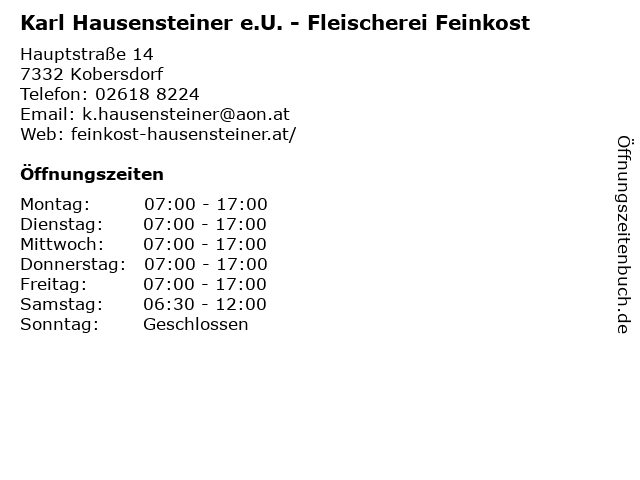 Branchen & Suchbegriffe zu Karl Hausensteiner e.U. - Fleischerei Feinkost:e.u., feinkost, fleischerei, hausensteiner, imbiss, karl, metzgerei, wurst |