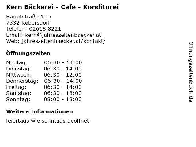 5 Bäckerei Café Konditorei Christian Kern e.U. (Entfernung: 16,97 km) Arenaplatz 1, Top 4, 7210 Mattersburg 6 Kern Daniela - Meisterbetrieb für Gebäudereinigung (Entfernung: 18,65 km) Steinweg 2, 2820 Walpersbach |