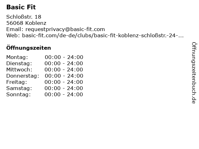 | Öffnungszeiten Basic Fit in Koblenz anzeigen | |