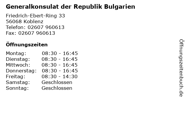 Branchen & Suchbegriffe zu Generalkonsulat der Republik Bulgarien:botschaften, bulgarien, generalkonsulat, konsulate, republik |