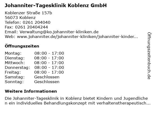 Branchen & Suchbegriffe zu Johanniter-Tagesklinik Koblenz GmbH:johanniter, tagesklinik |