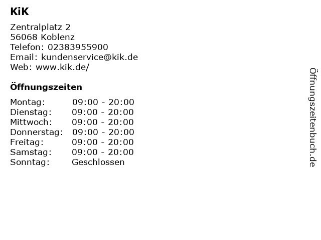 | Öffnungszeiten KiK in Koblenz anzeigen | |