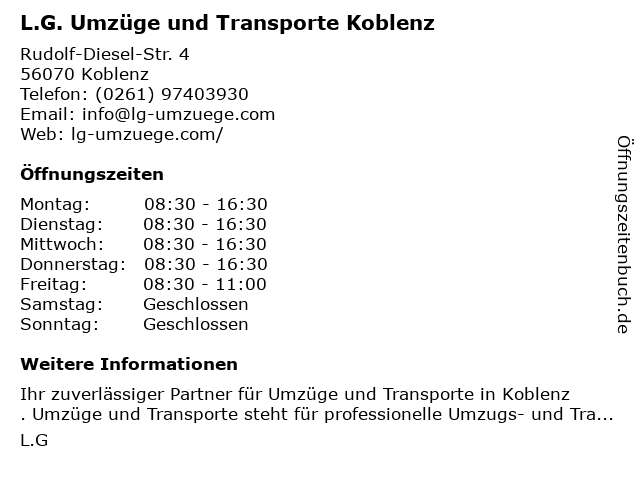 Branchen & Suchbegriffe zu L.G. Umzüge und Transporte Koblenz:einlagerungen, fernumzüge, firmenumzugsservice, firmenumzüge, l.g., lagerung, nahumzüge, privatumzüge, transporte, umzüge |