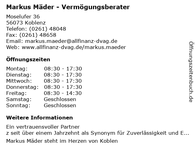 6 Dr. med. Markus Krekeler, Arzt für Augenheilkunde (Entfernung: 2,61 km) Casinostraße 48-54, 56068 Koblenz |