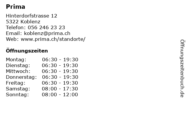 | Öffnungszeiten Prima in Koblenz anzeigen | |
