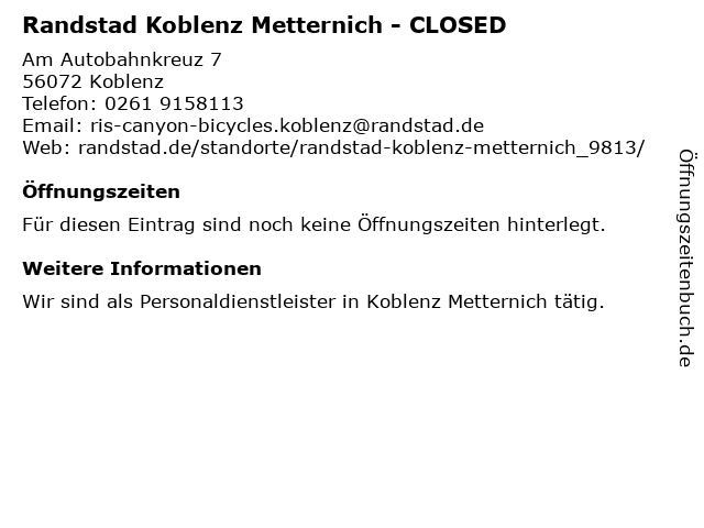 | Randstad Koblenz Metternich - CLOSED anrufen | |