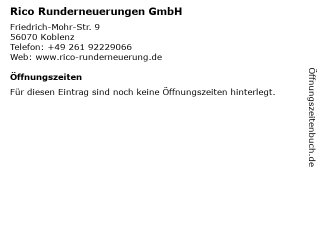 | Öffnungszeiten Rico Runderneuerungen GmbH in Koblenz anzeigen | |