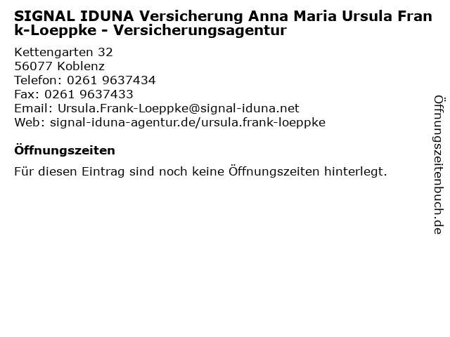 | SIGNAL IDUNA Versicherung Anna Maria Ursula Frank-Loeppke - Versicherungsagentur anrufen | |