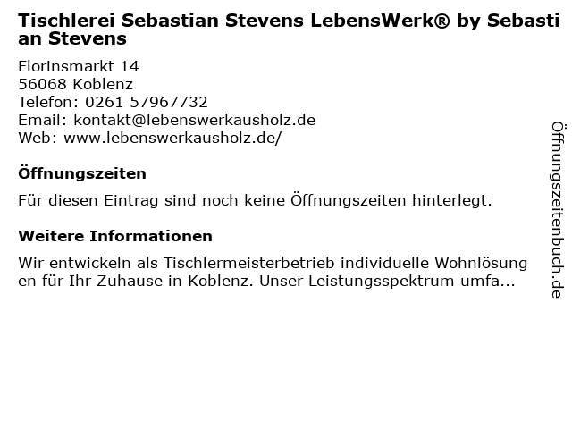 Öffnungszeiten Tischlerei Sebastian Stevens LebensWerk® by Sebastian Stevens