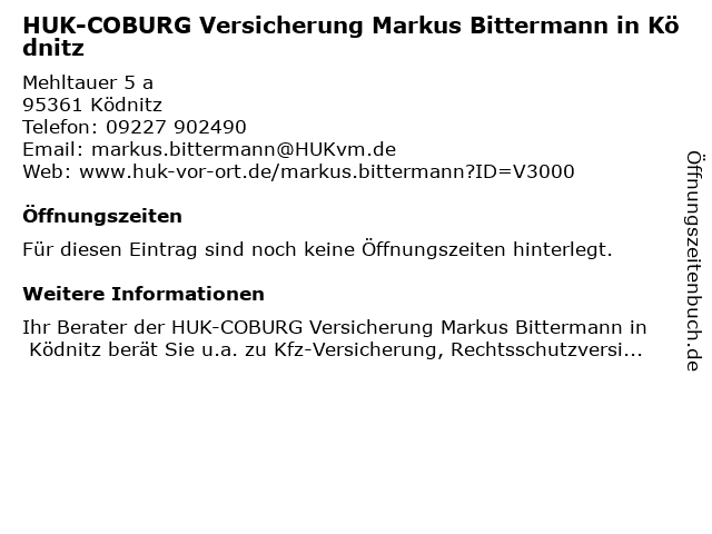 | HUK-COBURG Versicherung Markus Bittermann in Ködnitz anrufen | |