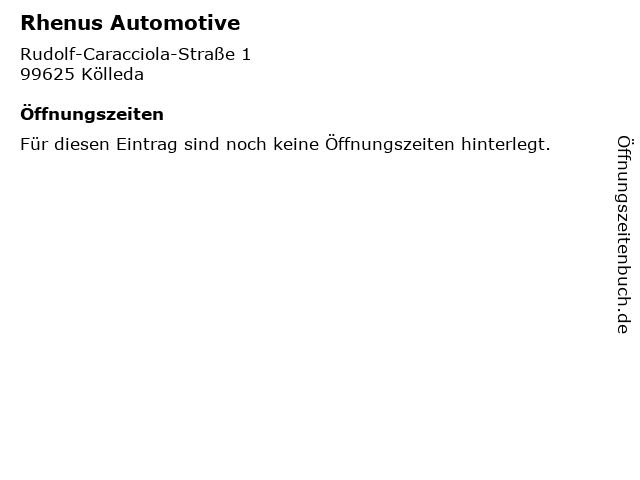 | Öffnungszeiten Rhenus Automotive in Kölleda anzeigen | |
