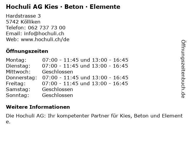 Öffnungszeiten Hochuli AG Kies · Beton · Elemente