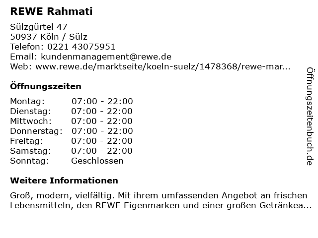 | Öffnungszeiten REWE Rahmati in Köln / Sülz anzeigen | |