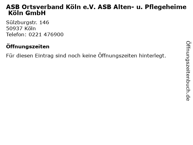 | ASB Ortsverband Köln e.V. ASB Alten- u. Pflegeheime Köln GmbH anrufen | |