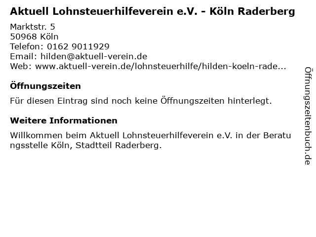 | Aktuell Lohnsteuerhilfeverein e.V. - Köln Raderberg anrufen | |