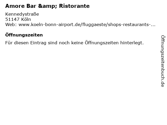 | Öffnungszeiten Amore Bar & Ristorante in Köln anzeigen | |