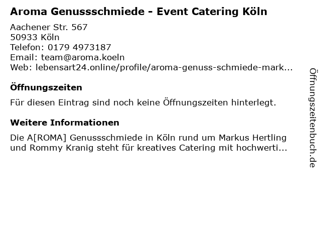 | Aroma Genussschmiede - Event Catering Köln anrufen | |
