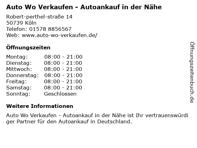 1 Auto verkaufen einfach gemacht: Barzahlung bei Autoankauf (Entfernung: 0,01 km) Robert-perthel-str. 14, 50739 Köln 6 |