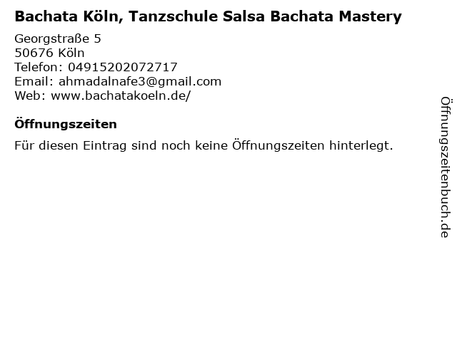 | Bachata Köln, Tanzschule Salsa Bachata Mastery anrufen | |