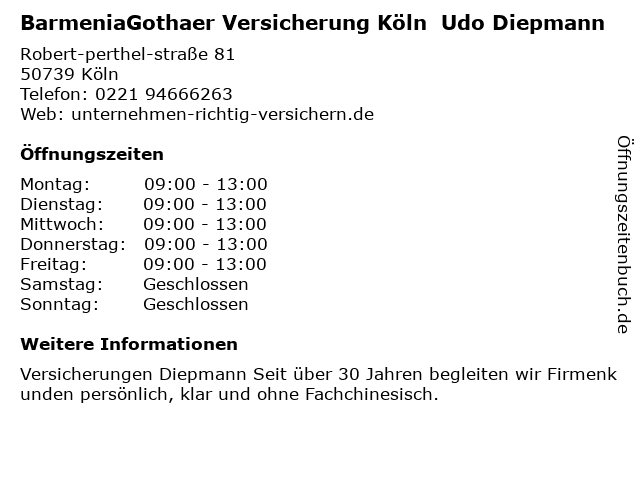 Branchen & Suchbegriffe zu BarmeniaGothaer Versicherung Köln Udo Diepmann:barmeniagothaer, diepmann, finanzplanung, krankenkasse, udo, unternehmensmanagementberatung, unternehmensverwaltungsservice, versicherung |
