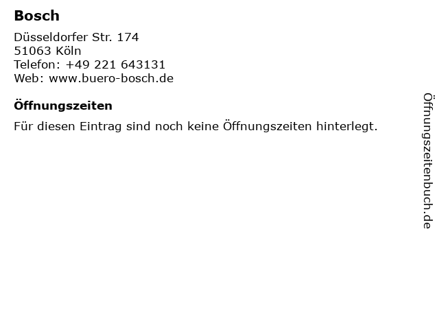 | Öffnungszeiten Bosch in Köln anzeigen | |
