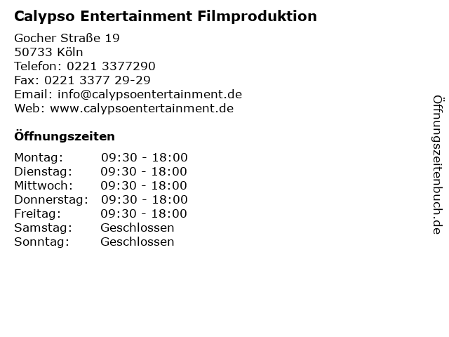 Branchen & Suchbegriffe zu Calypso Entertainment Filmproduktion:calypso, entertainment, filmproduktion, filmproduktionsunternehmen, filmproduzenten |