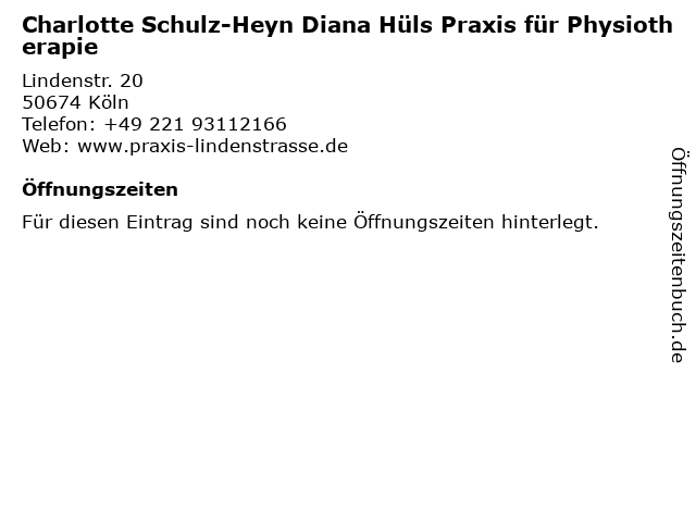 | Charlotte Schulz-Heyn Diana Hüls Praxis für Physiotherapie anrufen | |