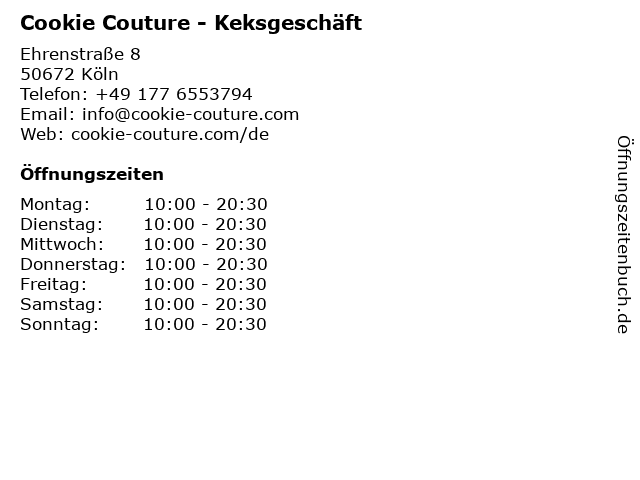 Öffnungszeiten Cookie Couture - Keksgeschäft in Köln anzeigen | |