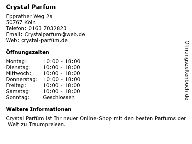 Öffnungszeiten Crystal Parfum in Köln anzeigen | |