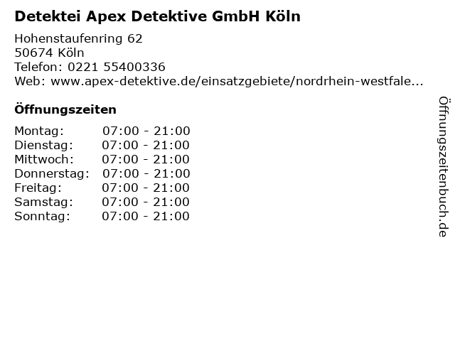 Branchen & Suchbegriffe zu Detektei Apex Detektive GmbH Köln:apex, detektei, detektive |