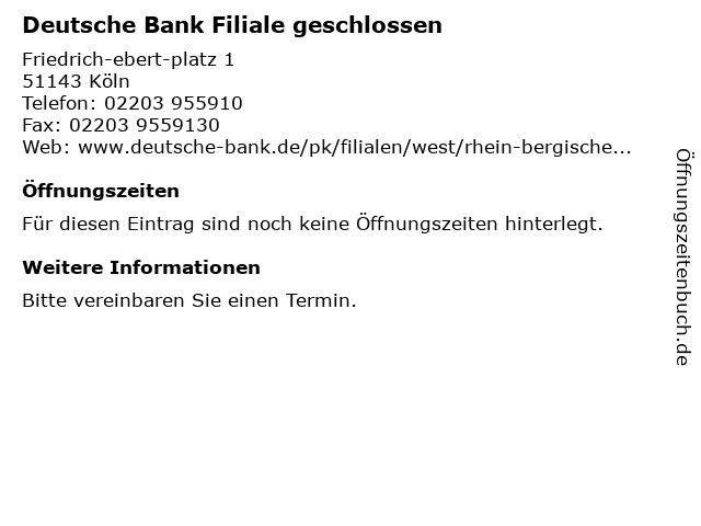 | Deutsche Bank Filiale geschlossen anrufen | |