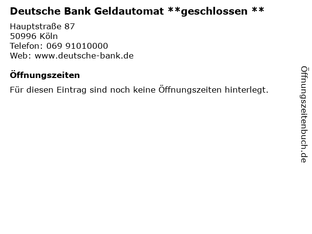 | Deutsche Bank Geldautomat **geschlossen ** anrufen | |