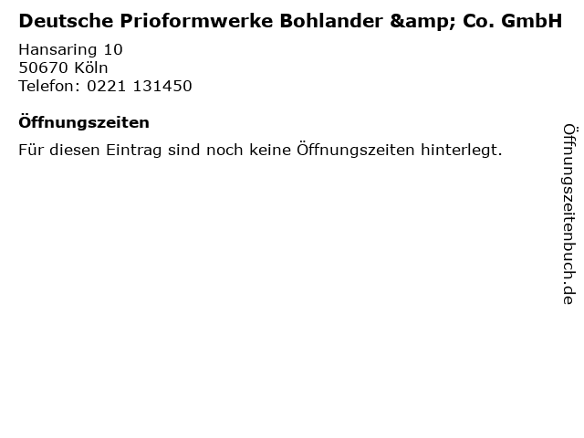 | Deutsche Prioformwerke Bohlander & Co. GmbH anrufen | |
