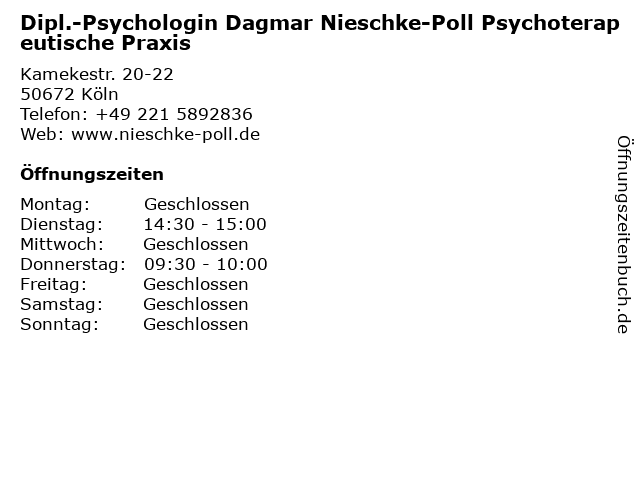 Branchen & Suchbegriffe zu Dipl.-Psychologin Dagmar Nieschke-Poll Psychoterapeutische Praxis:dagmar, dipl., nieschke, poll, praxis, psychologin, psychoterapeutische, psychotherapeut |