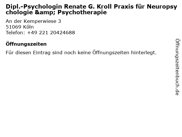 | Dipl.-Psychologin Renate G. Kroll Praxis für Neuropsychologie & Psychotherapie anrufen | |