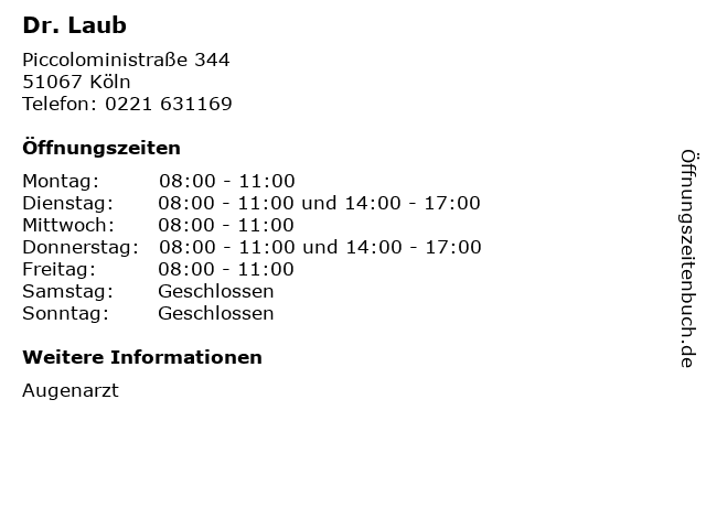 | Öffnungszeiten Dr. Laub in Köln anzeigen | |