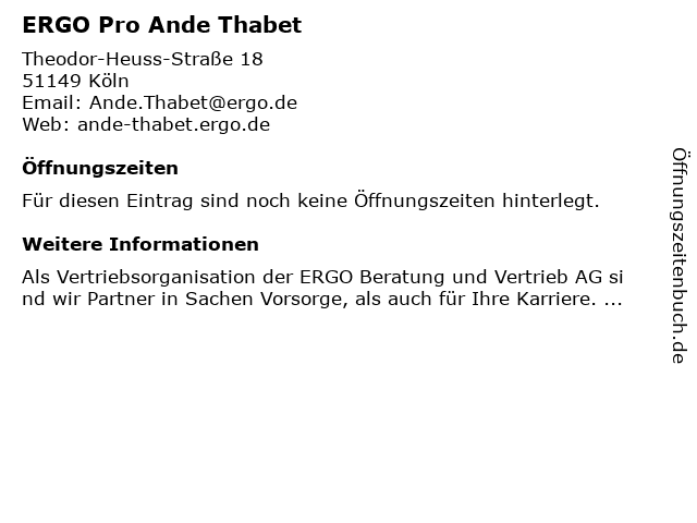 Öffnungszeiten ERGO Pro Ande Thabet in Köln anzeigen | |