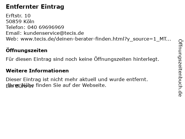 | Öffnungszeiten Entfernter Eintrag in Köln anzeigen | |