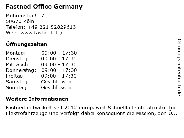 Öffnungszeiten Fastned Office Germany in Köln anzeigen | |